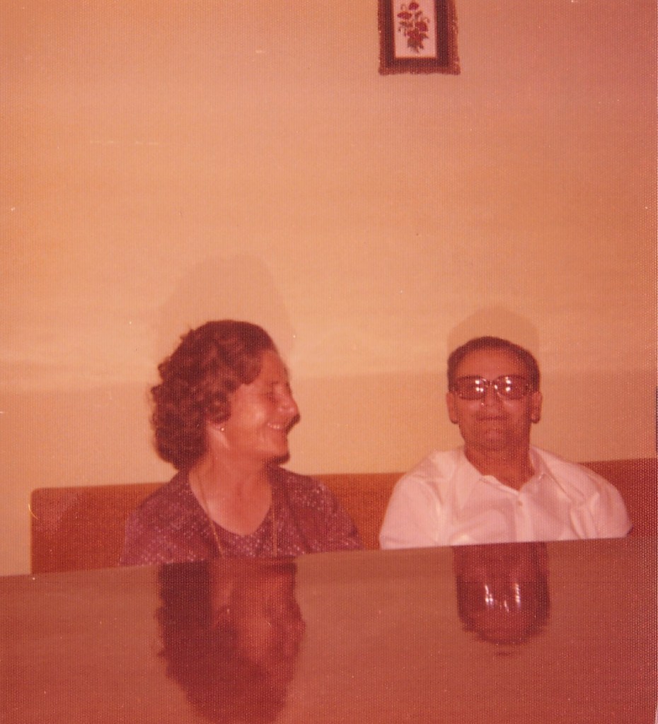 1964 (ή 1965). Ο προπάππους μου Γιώργος (Τζιώγκας) Λέντζιος και η προγιαγιά μου Μαρία Στάμου Λέντζιου στο πατρικό στο Δρυμό. Λεπτομέρεια φωτογραφίας από το αρχείο της μητέρας μου.