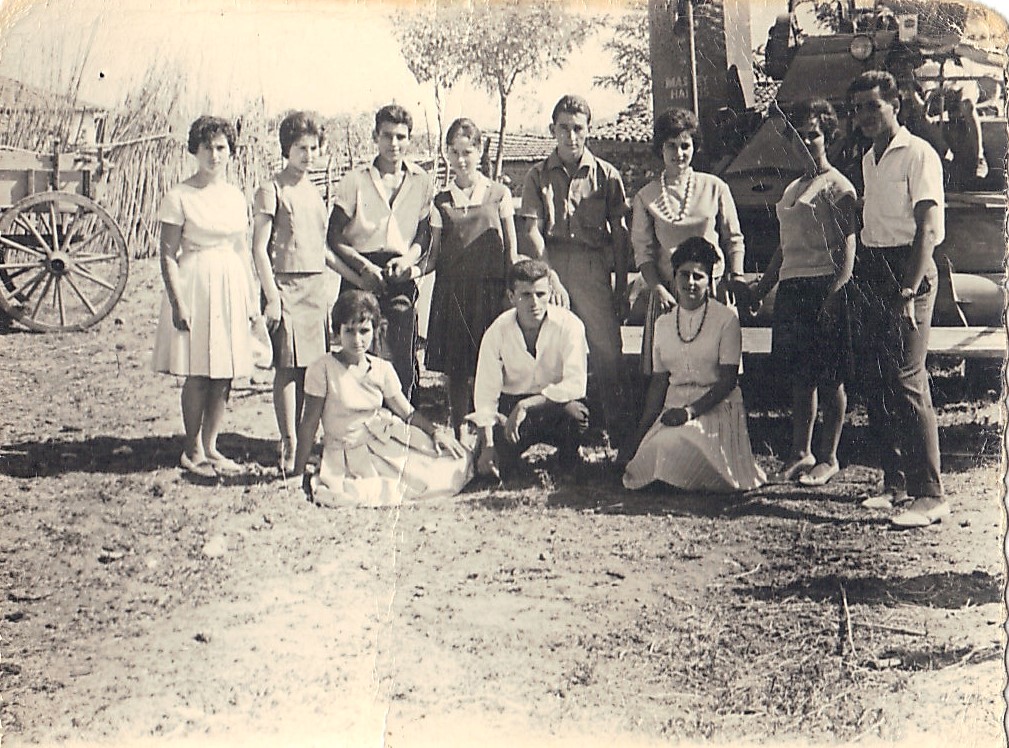 Βλάχοι του Δρυμού με συγγενείς από άλλα χωριά. Δρυμός, (πιθανότατα) 1962. Η μητέρα μου με πρώτα και δεύτερα ξαδέρφια της, όλοι με καταγωγή από τα Μεγάλα Λιβάδια. Όρθιοι από αριστερά (όνομα, συγγένεια με τη μητέρα μου, και τόπος κατοικίας τότε): (1) η μητέρα μου Μαρία Λέντζιου, Δρυμός, (2) Μαρίκα Λυσίτσα, 1η ξαδέρφη, Λάκκα Γιαννιτσών, (3) Αριστείδης Λέντζιος, 1ος ξάδερφος, Δρυμός (γιος του afendi mari, όπως αναφέρεται στην ηχογράφηση), (4) Ζωή Λέντζιου (φωτογραφία της και στην ηχογράφηση 69), 2η ξαδέρφη (εγγονή του παππού Φώτη Λέντζιου), Αραβησσός, (5) Κώστας Κωστίκας, 1ος ξάδερφος, Αχλαδοχώρι, (6) Χρυσούλα Φαρίνη, 2η ξαδέρφη, Πέντε Βρύσες, (7) Ουρανία Τζήκα, 2η ξαδέρφη, Πετρωτό Θεσσαλονίκης, (8) Αναστάσιος Λέντζιος, 2ος ξάδερφος (εγγονός του παππού Φώτη Λέντζιου), Αραβησσός. Καθιστοί από αριστερά: (9) Δέσποινα (Peptşa) Κωστίκα, 1η ξαδέρφη, Αχλαδοχώρι, (10) Κώστας Πορπόρης, ανηψιός της dada marea στο Δρυμό – ο πατέρας του ήταν ο νουνός της μητέρας μου, Παλαιόκαστρο, και (11) Μαριγούλα Τζήκα, 2η ξαδέρφη, Πετρωτό Θεσσαλονίκης. Η τοποθεσία όπου ελήφθη η φωτογραφία είναι το Ψηλό τ’αλώνι στο Δρυμό, την ημέρα του γάμου της Κυράτσας Λέντζιου, 1ης ξαδέρφης της μητέρας μου. Από το φωτογραφικό αρχείο της μητέρας μου, Μαρία Λέντζιου Σίββα.
